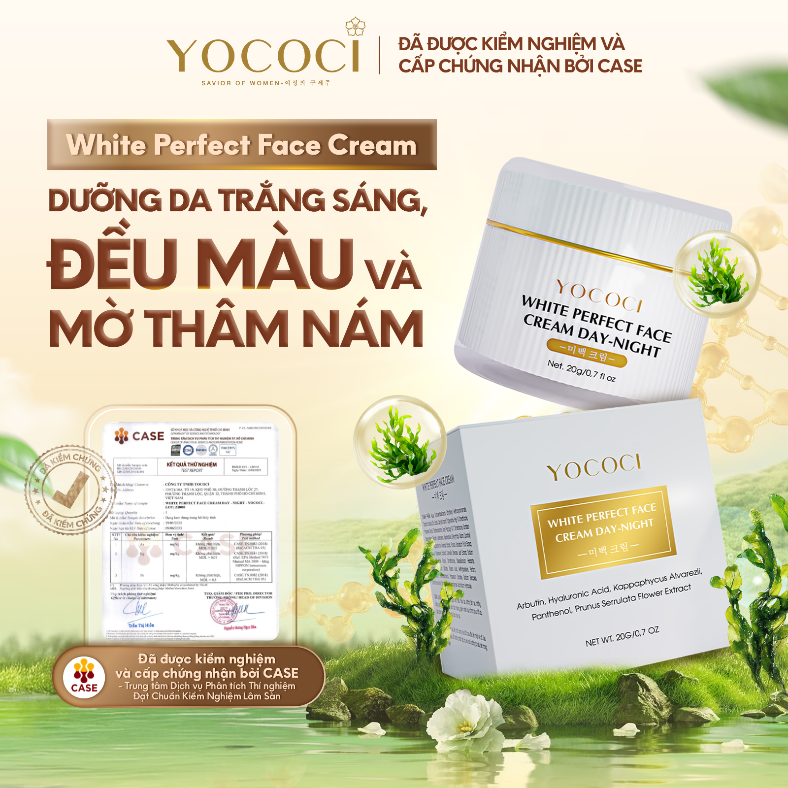 Kem dưỡng trắng da mặt ngày và đêm Yococi Perfect Face Cream Day & Night 20g – Dưỡng ẩm, mờ thâm nám, chống lão hóa